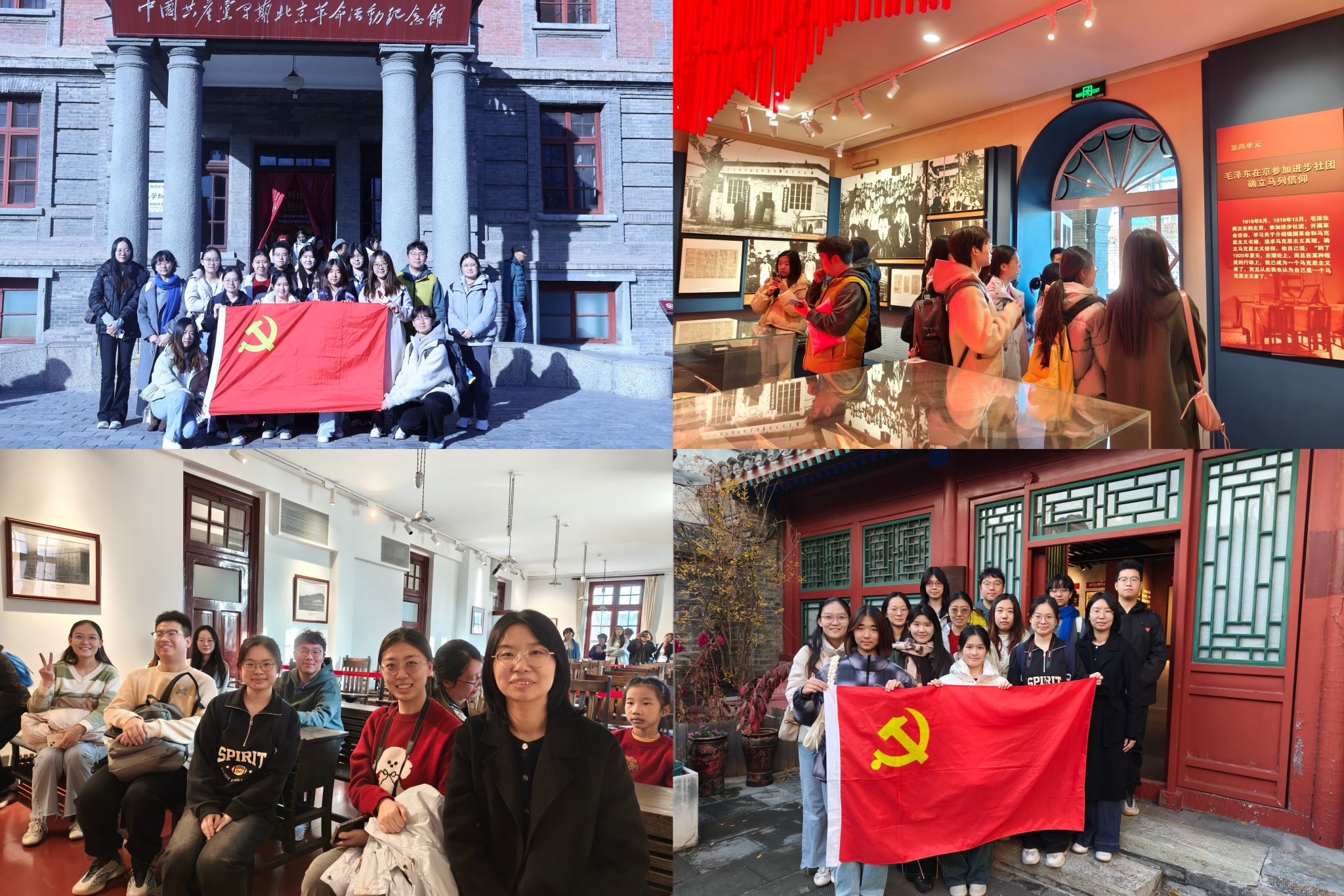 11月9日,本科生党支部与团总支学生会15名学生,在党支部书记罗云燕带领下,共同参观北大二院旧址、北大红楼及《新青年》编辑部旧址。师生们追寻中国共产党早期北京革命活动的足迹,深入了解马克思主义在中国的最初传播与思想启蒙历程。在党旗下重温入党誓词、在珍贵史料前回望“觉醒年代”,支部成员深刻体会到革命前辈矢志救国图强的初心使命,进一步增强了理想信念的坚定性和行动的自觉性。