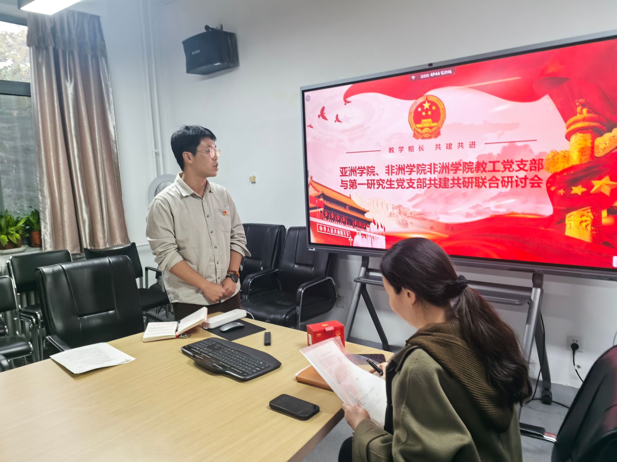 2025年10月22日,非洲学院教工党支部与亚洲学院、非洲学院第一研究生党支部于主楼344会议室召开主题为“教学相长 共建共进”联合研讨会,本次会议由研究生一支部书记曾振鹏主持,参会同志包括非洲学院教工党员和非洲学院硕博党员共21人。